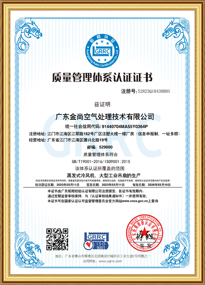 质量管理体系认证证书